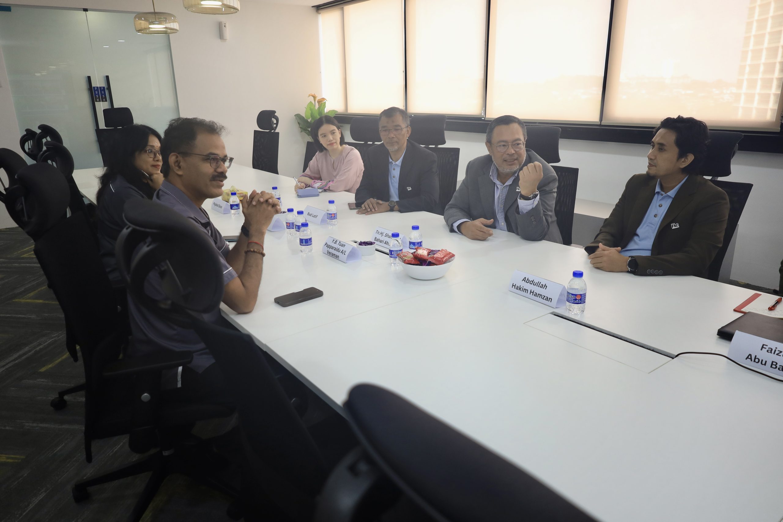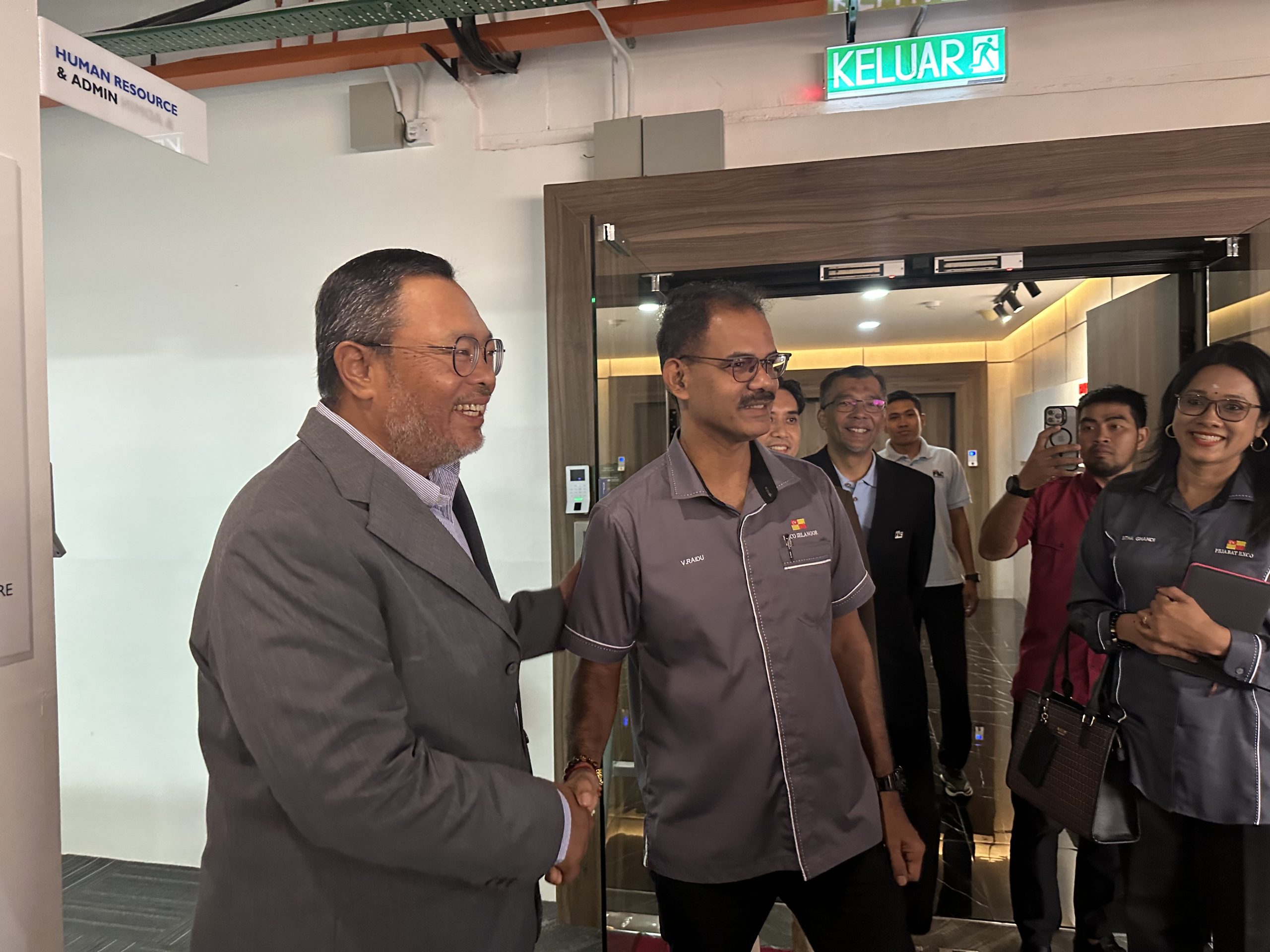 Shah Alam: Kesudian Exco Sumber Manusia dan Pembasmian Kemiskinan Negeri Selangor, Yang Berhormat Tuan Papparaidu Veraman hadir ke pejabat PKNS FM Integrated Sdn. Bhd (PFMI), di sambut mesra oleh Ketua Pegawai Eksekutif PFMI, Tuan Haji Shamshul Bahari Ahmad serta seluruh wargakerja PFMI hari ini.